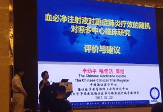 ¸´µ©´óѧÁ¥ÊôÖÐɽҽԺºôÎü¿ÆËÎÔªÁÖ½ÌÊÚ£¨ÉϺ£ÊкôÎü²¡Ñо¿Ëù¸±Ëù³¤£©Ó¦´ó»áÔ¼Ç룬ÒÔ¡°Intravenous infusion of Chinses medicine Xuebijing(XBJ) significantly improved outcome in seve re pneumonia patients in a multiple center Randomized Controlled Clinical Trail¡±£¨Ñª±Ø¾»×¢ÉäÒº¿ÉÏÔÖø¸ÄÉÆÖØÖ¢·ÎÑ×»¼ÕßÔ¤ºóµÄ¶àÖÐÐÄËæ»ú±ÈÕÕÁÙ´²ÊÔÑ飩ΪÌâ×öרÌⱨ¸æ£¬ÖصãÏÈÈÝÁË¡°ÆÀ¼ÛѪ±Ø¾»×¢ÉäÒº¶ÔÖØÖ¢·ÎÑ×ÁÆÐ§µÄËæ»ú±ÈÕÕ¶àÖÐÐÄÁÙ´²Ñо¿¡±µÄÖ÷ÒªÑо¿Ð§¹û¡£