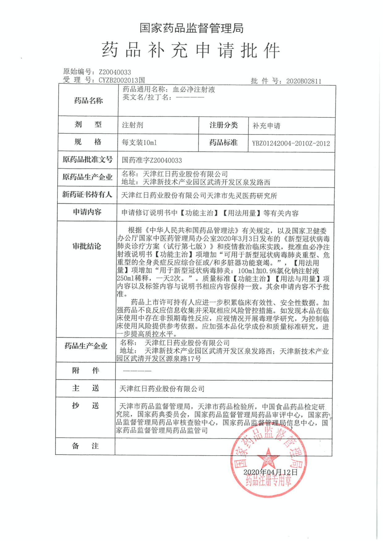 Ѫ±Ø¾»±»¹ú¼ÒÒ©¼à¾ÖÅú×¼£¬ÔöÌíÖÎÁÆÖØÖ¢¡¢Î£ÖØÐÍйڷÎÑ×µÄ˳Ӧ֢¡£