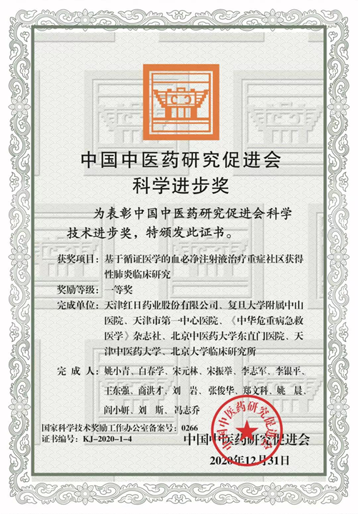 2020Ä꣬»ùÓÚÑ֤ҽѧµÄѪ±Ø¾»ÖÎÁÆÖØÖ¢ÉçÇø»ñµÃÐÔ·ÎÑ×µÄÁÙ´²Ñо¿£¬»ñµÃÖйúÖÐÒ½Ò©Ñо¿Ôö½ø»á¿Æ¼¼Ç°½øÒ»µÈ½±¡£